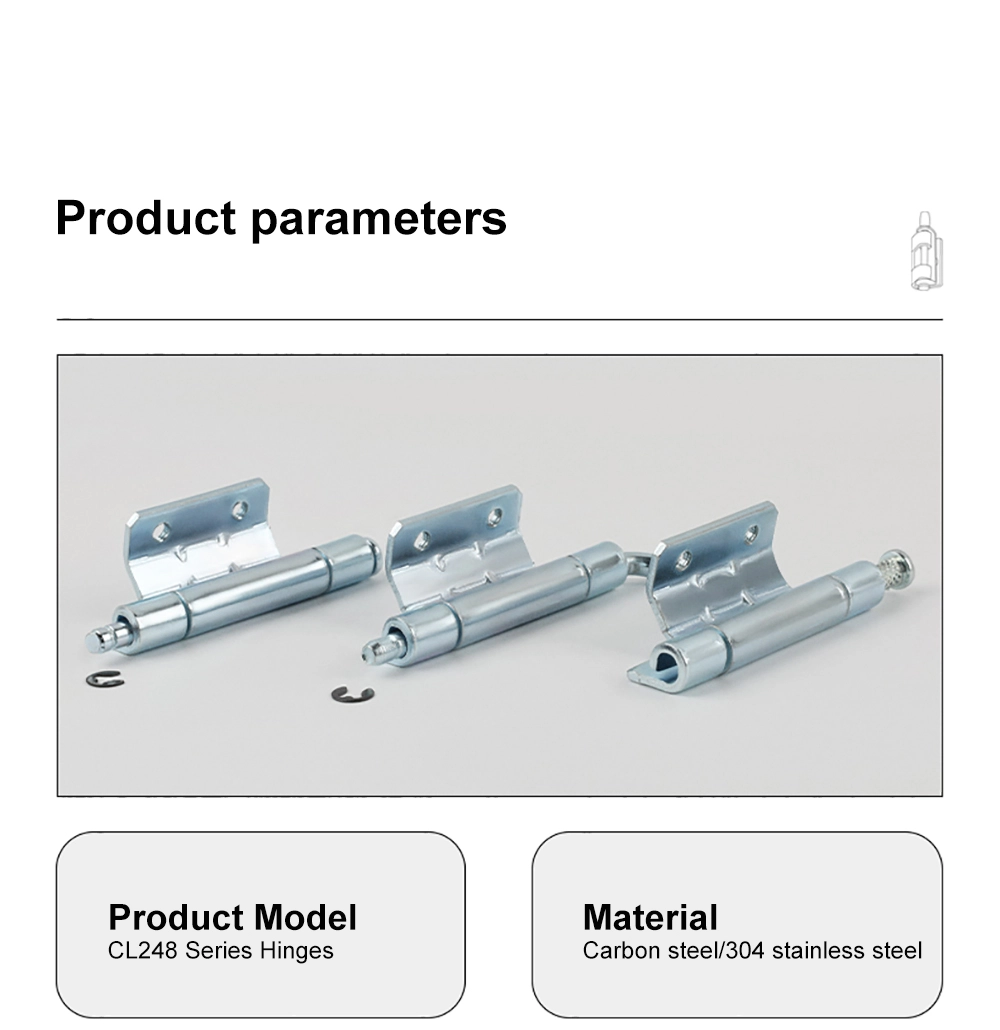 The Distribution Board Swivel Hinge ຮອງຮັບການແກ້ໄຂສະກູ ແລະການຕິດຕັ້ງການເຊື່ອມ. Screw mounting ເຫມາະສົມກັບຕູ້ໂລຫະແຜ່ນມາດຕະຖານ, ໃນຂະນະທີ່ການເຊື່ອມໂລຫະແມ່ນໃຊ້ໃນກອບຮຽກຮ້ອງໃຫ້ມີຕໍາແຫນ່ງ hinge ຖາວອນ. The CL248 Distribution Board Swivel Hinge ເຫມາະກັບຂະບວນການຜະລິດ enclosure ທີ່ແຕກຕ່າງກັນແລະຮັກສາການຕິດຕັ້ງທີ່ຫມັ້ນຄົງໃນຕູ້ໄຟຟ້າແລະກ່ອງພື້ນຖານ.