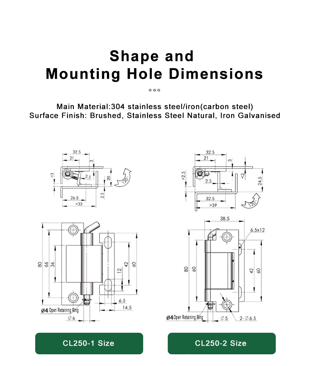 ຊຸດຂອງ hinges ທີ່ເອົາອອກໄດ້ນີ້ສະເຫນີທັງ Zinc ໂລຫະທີ່ວັດສະດຸສະແຕນເລດແລະຕົວເລືອກສະແຕນເລດ. ສະບັບ Zinc Allit ປະກອບມີສາມ chromees ດ້ານ: chrome ທີ່ມີສີດໍາ, ສີຂາວສົດໃສ, ໃນຂະນະທີ່ສະບັບສະແຕນເລດຮັບຮອງເອົາຂັ້ນຕອນທີ່ຖືກຖູ, ເຊິ່ງເຫມາະສົມກັບສະຖານະການອຸດສາຫະກໍາ. ສະບັບສະແຕນເລດແມ່ນຖືກຖູ, ເຊິ່ງເຫມາະສໍາລັບຮູບການອຸດສາຫະກໍາ. ສະບັບສະແຕນເລດແມ່ນສາມາດປັບຕົວໄດ້ກັບສະພາບແວດລ້ອມຕ່າງໆເຊັ່ນ: ຄວາມຊຸ່ມ, ອາຊິດແລະເປັນດ່າງ.