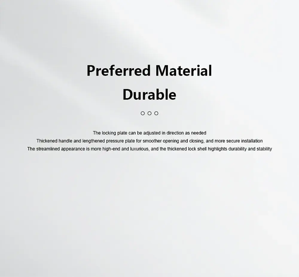 ຮ່າງກາຍລັອກແມ່ນເຮັດດ້ວຍໂລຫະປະສົມທີ່ມີຄວາມເຂັ້ມແຂງສູງ, ເຊິ່ງບໍ່ແມ່ນເລື່ອງງ່າຍທີ່ຈະເສຍຫາຍ. ການນໍາໃຊ້ຂະບວນການກາວຂອງ dot, ມັນສາມາດບັນລຸຜົນຂອງການຕ້ານການສັ່ນສະເທືອນ, ເຊິ່ງແຂງແຮງແລະທົນທານກວ່າ. ແຜ່ນລັອກສາມາດປັບໄດ້ກັບທິດທາງທີ່ຈໍາເປັນ, ແລະຈັບຫນາ, lock ທີ່ຢູ່ອາໃສແລະຂະຫຍາຍຄວາມປອດໄພທັງຫມົດເພີ່ມຄວາມປອດໄພແລະຄວາມລຽບງ່າຍຂອງການເປີດແລະປິດ.